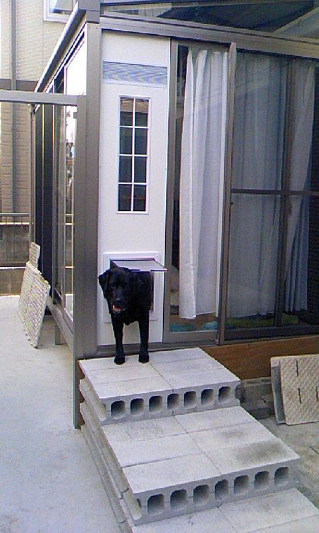 "りっぱな わんこの家が完成しました これで わんも自由に 出入りできます 何度も 見積もり変更していただき 面倒な注文に 対応していただけました。 "